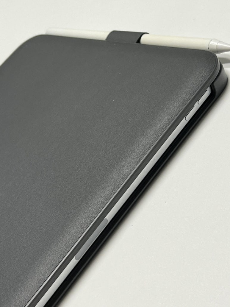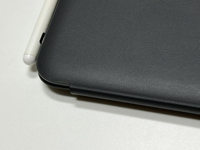 완전히 덮고 나서의 두께는 펜슬이 있는 윗부분을 보면 될듯. 일반적인 아이패드 홀커버 케이스보다 조금 더 두꺼운 정도인데, 무게와 두께감이 훨씬 더 무겁거나 두껍다고 느껴지지는 않았다.