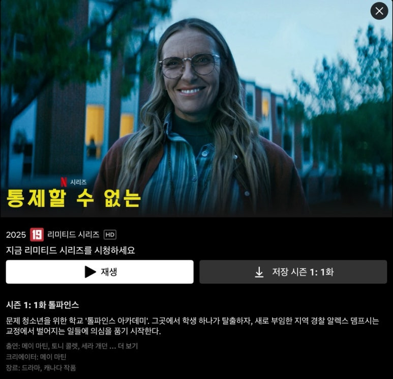 먼저 통제할수없는 이 시리즈는 #영화유전 영화에서 인상 깊게 봤던 #토니콜렛 의 배우가 메인 포스터에 딱 걸려 있었기 때문이다. 기본적으로 약간 그로테스크 하고 기괴함이 곁들여진 작품을 좋아하는 편인데 포스터 분위기부터 딱 내가 기대하는 느낌이었다. 그렇다고 피가 난무하는 고어함을 좋아하지는 않고 실제로 있을법하지 않나 싶은 컬트, 사이비 종교의 이런 소재인가 싶었다.