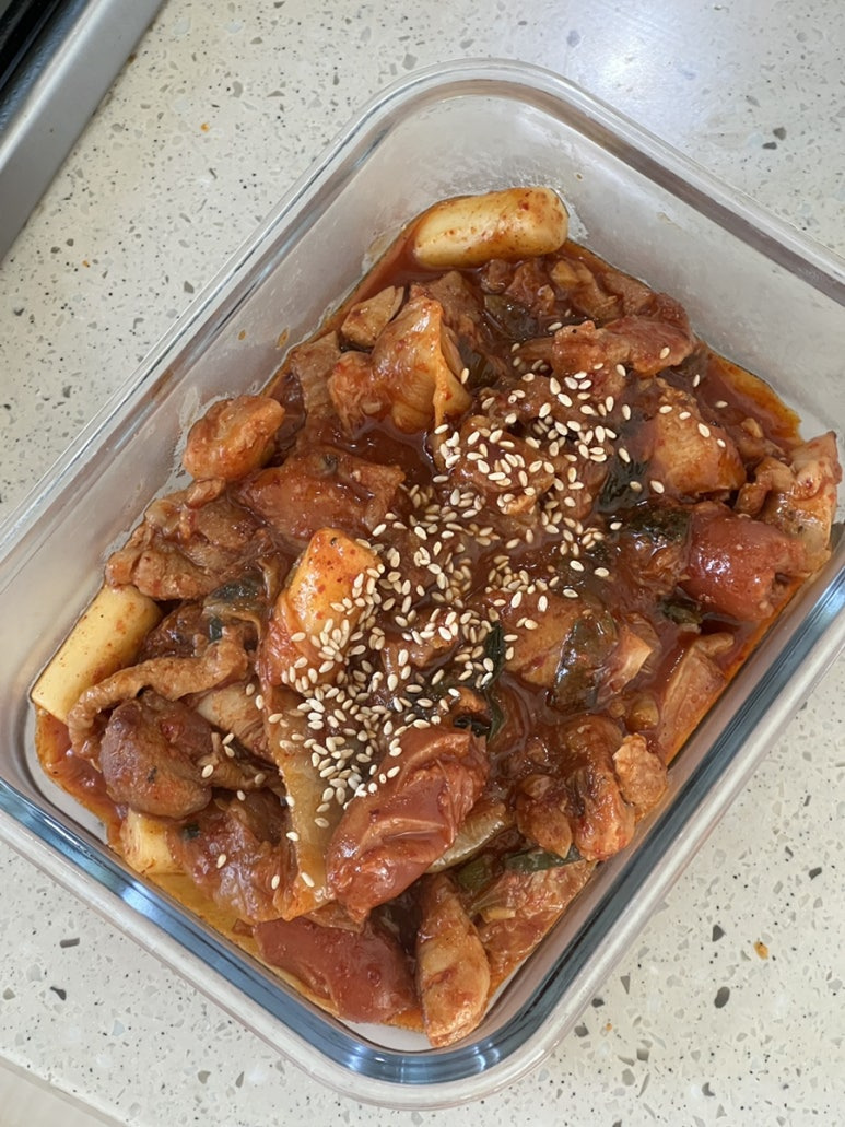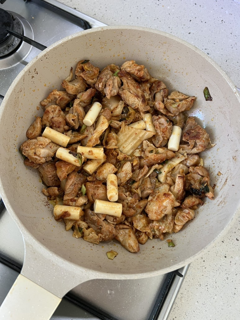 #엽기떡볶이 에서 항상 #엽기닭볶음탕 을 먹고싶은데, 늘 품점이슈로 인해서 남은 엽기떡볶이로 야매 #닭볶음탕 혹은 #닭갈비 그 사이에 무엇인가의 요리를 해봤던 오늘의 음식.