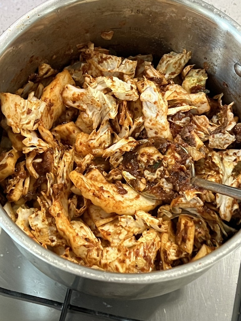 볶은 된장에 배추를 겉절이마냥 뒤섞어