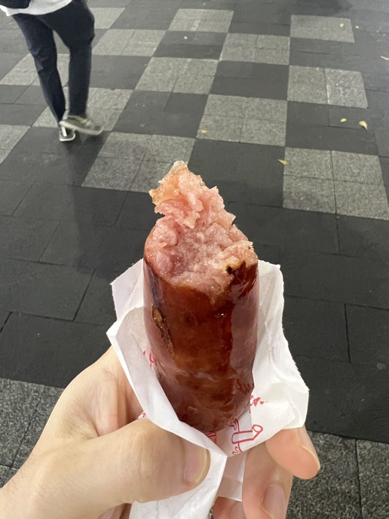 소시지구이가 보이길래 하나사서 나눠먹기