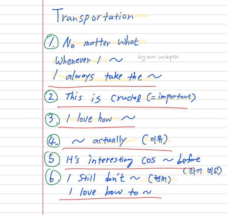 오픽 질문 중 교통에 대한 답변