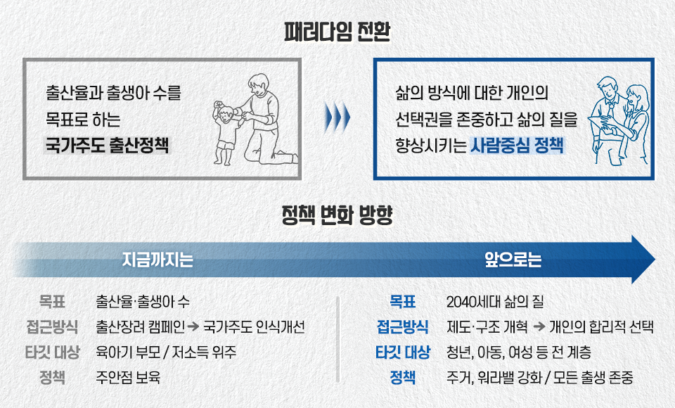 이러한 문제를 인식한 듯, 정부의 저출산 정책도 점차 패러다임이 바뀌고 있다.